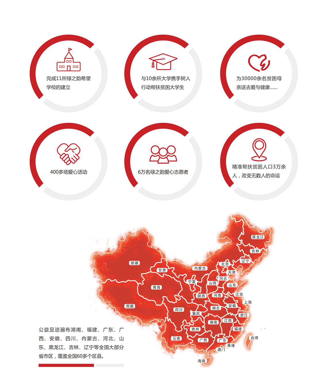 綠之韻公益基金會陸續(xù)投入1000萬元開展綠之韻樹人行動——以大學(xué)生影響小學(xué)生,開展“精神扶貧、勵志教育”活動,首先在選定的大學(xué)里以現(xiàn)金的形式資助困難大學(xué)生,受資助大學(xué)生后期受邀到綠之韻希望小學(xué)進(jìn)行志愿支教活動,搭建起大學(xué)生與綠之韻……