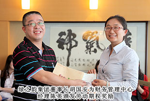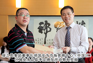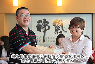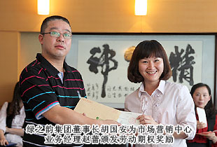 “綠之韻模式”的勞動股份期權(quán)獎勵機(jī)制,始于2011年,分為勞動股份期權(quán)(三年期)和勞動股份期權(quán)(五年期)兩種形式,兌付方式分為一次性兌付和逐年兌付兩種方式,開創(chuàng)了直銷企業(yè)主動將企業(yè)價值與普通員工共享的里程碑式先河。在2012年度勞動期權(quán)獎金頒發(fā)儀式上,在全場熱烈的掌聲中,綠之韻集團(tuán)胡國安董事長親自為24位勞動期權(quán)獲獎員工頒發(fā)了獎勵支票,并一一合影留念。胡國安董事長在頒獎儀式上指出:中國夢、綠之韻夢歸根結(jié)底是所有人的夢,“綠之韻夢”的重要內(nèi)涵就是要讓每一位綠之韻人共同享有夢想成真的機(jī)會,共同享有同時代和綠之韻一起成長與進(jìn)步的機(jī)會,共同享有榮耀和人生出彩的機(jī)會。胡國安董事長進(jìn)一步強(qiáng)調(diào),在綠之韻事業(yè)中,每一位員工的崗位不同、職責(zé)不同、貢獻(xiàn)不同,但都是“綠之韻夢”的筑夢人和受益者。筑夢人和受益者,包含著兩個層面交相融匯、榮辱與共的深刻涵義:所謂“筑夢人”,就是綠之韻夢可以分解為每一位綠之韻人的夢。每一位綠之韻人只有將個人的夢想融入綠之韻事業(yè)中,才能最終走向成功,尊享榮耀。由此,每一位綠之韻人必須珍惜韶華、奮發(fā)有為,勇做奮進(jìn)者、開拓者和奉獻(xiàn)者,為實現(xiàn)綠之韻夢付出智慧和力量;所謂“受益者”,就是綠之韻被偉大時代所賦予的歷史使命就是“員工富裕、企業(yè)興旺、社會和諧”,要為員工、為更多的人謀福利、造福祉,讓員工、讓更多人共享人生出彩的機(jī)會。目前,不論是公司現(xiàn)有十三大福利獎勵,還是勞動期權(quán)獎勵機(jī)制,綠之韻就是要讓每一位員工都能感受到自己就是綠之韻血脈相連的利益共同體,都能分享到企業(yè)發(fā)展成果的激動和欣慰。這是綠之韻感情所系,也是綠之韻責(zé)任所在!