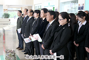 捐贈現(xiàn)場沒有音樂,沒有舞臺,沒有領導講話,沒有轟轟烈烈的儀式,有的只是無聲的哀思,有的只是心靈的祈愿逝者安息、生者堅強。在綠之韻慈善基金的募捐箱前,每一位員工都默默行動,踴躍捐款。100元、300元、1000元……越積越多,有的員工傾囊相助,有的人填寫認捐書,愛心的暖流在綠之韻流淌,一方有難、八方支援的中國力量在人與人之間得以傳承?!拔覀儫o法到達災區(qū)現(xiàn)場參與抗震救災,但是我們的心始終和雅安人民在一起”、“萬涓成水,匯愛成海,我們希望能凝聚更多的力量一起來幫助雅安?!睒銓崯o華而寄予深情的話語道出了綠之韻人真摯的仁愛之心、慈善之舉。短短十多分鐘時間里,就募集到了數(shù)萬元善款。而在綠之韻集團各地分公司,家人們也正在以各種形式,紛紛為雅安災區(qū)捐贈愛心款項。情系雅安,沒有時空的距離,從每一個綠之韻人的臉上,我們又對大愛無疆有了更新、更深層次的解讀。
