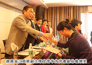 在隨后舉行的晚宴上,湖南省副省長、省工商聯(lián)主席何報翔祝賀所有獲獎的女企業(yè)家們,并希望所有的企業(yè)家都能以她們?yōu)榘駱?,充分發(fā)揮自身優(yōu)勢,不斷增強企業(yè)發(fā)展的新動力,為加快富民強省、實現(xiàn)科學跨越發(fā)展做出新的更大貢獻。勞嘉副總裁作為優(yōu)秀女企業(yè)家代表,與何報翔副省長等各級領導深入交流了關于促進湖南經(jīng)濟快速平穩(wěn)發(fā)展的若干建議以及企業(yè)未來的發(fā)展規(guī)劃,受到了各級領導的肯定。