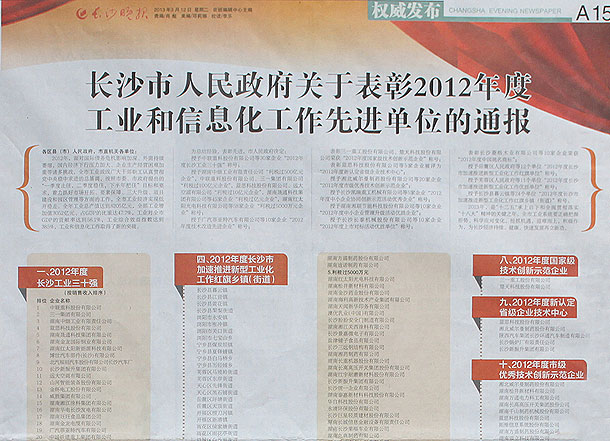 2013年3月12日,長(zhǎng)沙市工業(yè)和信息化工作暨第二屆企業(yè)技術(shù)創(chuàng)新大會(huì)在市政府召開,綠之韻集團(tuán)作為獲獎(jiǎng)企業(yè)受邀出席了此次會(huì)議。