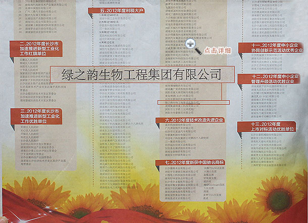 會(huì)上,綠之韻集團(tuán)被長(zhǎng)沙市人民政府光榮授予“利稅過5000萬(wàn)元企業(yè)”稱號(hào),并被長(zhǎng)沙市工業(yè)和信息化委員會(huì)評(píng)定為“2013年度長(zhǎng)沙市‘三百之星’企業(yè)”,被長(zhǎng)沙市加速推進(jìn)新型工業(yè)化工作領(lǐng)導(dǎo)小組辦公室評(píng)定為“2013年長(zhǎng)沙工業(yè)百戶重點(diǎn)監(jiān)測(cè)企業(yè)”,納入優(yōu)先服務(wù)名單,將得到重點(diǎn)扶持,全力支持做大做強(qiáng)做優(yōu)!同時(shí),長(zhǎng)沙國(guó)家生物產(chǎn)業(yè)基地管委會(huì)也被評(píng)為“2012年度長(zhǎng)沙市加速推進(jìn)新型工業(yè)化工作紅旗單位”。