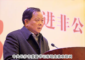 中共長(zhǎng)沙市委副書記張迎龍致歡迎詞,提出借十八大成功召開的良好勢(shì)頭,2013年非公有制經(jīng)濟(jì)將進(jìn)入一個(gè)新的、難得的發(fā)展機(jī)遇期。希望全市工商界企業(yè)家牢牢把握發(fā)展大勢(shì),大展宏圖,做大做強(qiáng),回報(bào)社會(huì),造福于民。