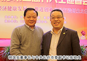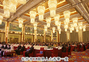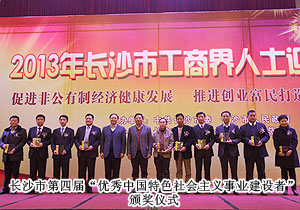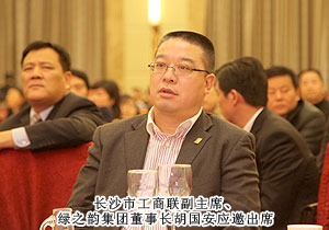 “話發(fā)展,謀未來,共迎新春佳節(jié)?!?013年1月23日,中共長(zhǎng)沙市委、市政府舉行2013年長(zhǎng)沙市工商界人士迎春酒會(huì)暨長(zhǎng)沙市第四屆“優(yōu)秀中國特色社會(huì)主義事業(yè)建設(shè)者”頒獎(jiǎng)典禮。來自全市各行各業(yè)的600多名工商界人士歡聚一堂,共議長(zhǎng)沙發(fā)展大計(jì)。中共長(zhǎng)沙市委副書記、市長(zhǎng)張劍飛,中共長(zhǎng)沙市委副書記張迎龍,長(zhǎng)沙市人大常委會(huì)主任袁觀清等領(lǐng)導(dǎo)出席迎春酒會(huì)。長(zhǎng)沙市工商聯(lián)副主席、第三屆優(yōu)秀中國特色社會(huì)主義事業(yè)建設(shè)者、綠之韻集團(tuán)董事長(zhǎng)胡國安主桌就座。