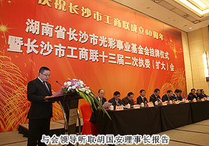 謀民生之利,解民生之憂。2012年12月21日,正值全國上下深入學習、貫徹黨的十八大精神的重要時刻,湖南省長沙市光彩事業(yè)基金會掛牌儀式暨慶祝市工商聯(lián)成立60周年大會在長沙隆重召開。中共長沙市委副書記、市長張劍飛,中共湖南省委統(tǒng)戰(zhàn)部副部長、省工商聯(lián)黨組書記湯新華,市領導文樹勛、黎石秋、謝明德、彭繼球等參加會議。會上,張劍飛市長為長沙市光彩事業(yè)基金會授牌,長沙市工商聯(lián)副主席、綠之韻集團董事長胡國安代表基金會接受牌匾,并憑借“義利兼顧,德行并重”的光彩精神擔任第一屆理事會理事長。
