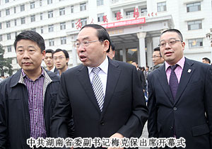 開(kāi)幕式前,中共湖南省委書記、省人大常委會(huì)主任周強(qiáng),湖南省人民政府省長(zhǎng)徐守盛,中共湖南省委副書記梅克保,中共湖南省委常委、省軍區(qū)政委李有新,中共湖南省委常委、省委秘書長(zhǎng)易煉紅,湖南省人大常委會(huì)副主任陳叔紅,省政府副省長(zhǎng)韓永文,省政協(xié)副主席王曉琴等領(lǐng)導(dǎo)親切接見(jiàn)全體青聯(lián)委員并合影留念。省委副書記梅克保出席開(kāi)幕式并做重要講話。梅克保指出,實(shí)踐證明,當(dāng)代湖南青年是值得信賴、堪當(dāng)重任、大有希望的一代。今后五年,是我省全面建設(shè)小康社會(huì)、加快推進(jìn)現(xiàn)代化進(jìn)程的關(guān)鍵時(shí)期。省第十次黨代會(huì)科學(xué)描繪了湖南未來(lái)五年改革發(fā)展的宏偉藍(lán)圖,提出了“四化兩型”的總戰(zhàn)略和“兩個(gè)加快、兩個(gè)率先”的總?cè)蝿?wù)。實(shí)現(xiàn)這一目標(biāo)任務(wù)是全省人民的共同心愿,也需要全省人民團(tuán)結(jié)一心、奮力拼搏。我省青年作為其中最富朝氣最具前途的重要群體,更是義不容辭、責(zé)無(wú)旁貸。