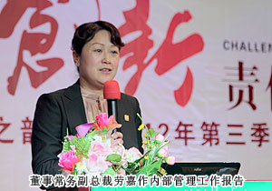 市場(chǎng)是綠之韻賴以生存的基礎(chǔ),健康持續(xù)是綠之韻發(fā)展的目標(biāo),安全穩(wěn)定是綠之韻管理的要求。會(huì)議上,綠之韻集團(tuán)常務(wù)副總裁勞嘉等全體高管分別從各自分管領(lǐng)域,針對(duì)第三季度工作進(jìn)行了回顧和總結(jié),并在接下來工作部署中表示,要真正領(lǐng)會(huì)企業(yè)的“競(jìng)合”精神,進(jìn)一步增強(qiáng)創(chuàng)新意識(shí)、發(fā)展意識(shí)、憂患意識(shí)和服務(wù)意識(shí),在第四季度重點(diǎn)抓好業(yè)績沖刺工作、綠之韻九周年年會(huì)工作以及明年發(fā)展制定工作計(jì)劃。同時(shí),綠之韻集團(tuán)六位分公司經(jīng)理也專程從湖南、內(nèi)蒙古、河北、遼寧、黑龍江、吉林奔赴長沙出席本次會(huì)議,他們帶來了各區(qū)域市場(chǎng)一線最前沿的情況,并就各分公司業(yè)績、內(nèi)部管理、市場(chǎng)環(huán)境等情況做出了詳細(xì)匯報(bào)。“種下梧桐樹,引得鳳凰來”,隨著綠之韻的不斷壯大,越來越多的新鮮力量不斷加入。會(huì)議上,張潔等8位新同事在進(jìn)行自我介紹時(shí)都表示,入職以來深深感受到綠之韻企業(yè)文化的吸引力,在未來的日子會(huì)發(fā)揮自己所長,與綠之韻共同成長。