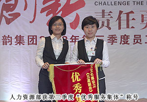 豐富的集體活動(dòng),不但充實(shí)了員工的業(yè)余生活,給綠之韻人帶來了歡樂、健康與正能量,更增強(qiáng)了綠之韻團(tuán)隊(duì)的凝聚力與戰(zhàn)斗力。羽毛球比賽已經(jīng)成為綠之韻的經(jīng)典傳統(tǒng)活動(dòng),綠之韻集團(tuán)第五屆羽毛球賽經(jīng)過激烈的角逐圓滿的落下帷幕。會(huì)上,綠之韻集團(tuán)董事常務(wù)副總裁勞嘉為獲得冠亞季軍的運(yùn)動(dòng)健兒和優(yōu)秀集體頒獎(jiǎng)。敢于拼搏、決不放棄、力拼到底的精神,是綠之韻人的賽場(chǎng)精神,更是綠之韻人的工作精神。為了市場(chǎng)精英能毫無后顧之憂的在一線沖鋒陷陣、開疆拓土,后勤人員勤勤懇懇、兢兢業(yè)業(yè)用心服務(wù)。來自財(cái)務(wù)部的周瑛、結(jié)算中心的章珍、業(yè)務(wù)服務(wù)部的楊婷被評(píng)為2012年第三季度服務(wù)明星,人力資源部被評(píng)為2012年第三季度優(yōu)秀服務(wù)集體。會(huì)上,綠之韻執(zhí)行總經(jīng)理龔振為服務(wù)明星頒獎(jiǎng)。