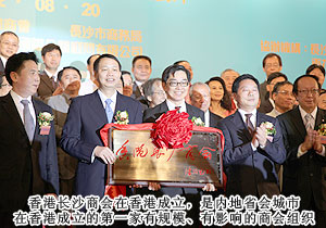 2012年8月20日,香港長(zhǎng)沙商會(huì)在香港成立,長(zhǎng)沙市重大項(xiàng)目推介會(huì)舉行,標(biāo)志著湖南與香港經(jīng)濟(jì)和社會(huì)聯(lián)系迎來一個(gè)全新的鼎盛時(shí)期。同時(shí),在長(zhǎng)沙市人民政府、長(zhǎng)沙市工商聯(lián)(總商會(huì))的組織下,由香港中華總商會(huì)主辦的為期七天(15日—21日)的香港工商業(yè)會(huì)長(zhǎng)研討班在香港開班。