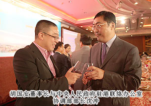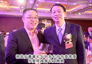 中央人民政府駐港聯(lián)絡(luò)辦公室協(xié)調(diào)部部長(zhǎng)沈沖,外交部駐港特派員公署副特派員李元明,中央人民政府駐港聯(lián)絡(luò)辦公室經(jīng)濟(jì)部副部長(zhǎng)孫湘一,全國(guó)港區(qū)人大代表召集人袁武,全國(guó)政協(xié)常委、僑界社團(tuán)聯(lián)會(huì)主席、全國(guó)僑聯(lián)副主席陳有慶等領(lǐng)導(dǎo)出席成立儀式。中共長(zhǎng)沙市委常委、市委統(tǒng)戰(zhàn)部長(zhǎng)、市海外聯(lián)誼會(huì)會(huì)長(zhǎng)文樹勛,長(zhǎng)沙市人民政府副市長(zhǎng)何寄華,長(zhǎng)沙市政協(xié)副主席、市工商聯(lián)主席、市總商會(huì)會(huì)長(zhǎng)彭繼球等湖南省市領(lǐng)導(dǎo)出席。湖南省政協(xié)委員、長(zhǎng)沙市工商聯(lián)(總商會(huì))副會(huì)長(zhǎng)、綠之韻集團(tuán)董事長(zhǎng)胡國(guó)安應(yīng)邀出席,并積極參與“湘港”經(jīng)濟(jì)建設(shè)討論,為推動(dòng)兩地互促發(fā)展建言獻(xiàn)策,被推選為香港長(zhǎng)沙商會(huì)的會(huì)董。