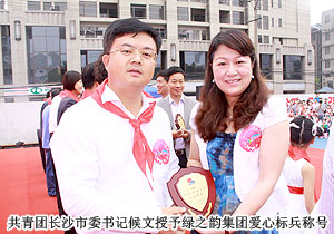 2012年5月26日,第三屆“杜鵑花開?情滿星城”大型公益活動(dòng)在長(zhǎng)沙青少年文化宮舉行。本次活動(dòng)由長(zhǎng)沙市委組織部、市委宣傳部、市文明辦、市少工委、團(tuán)市委、市教育局、《長(zhǎng)沙晚報(bào)》報(bào)業(yè)集團(tuán)、市廣播電視臺(tái)聯(lián)合舉辦,市青少年宮、市青基會(huì)共同承辦。團(tuán)省委副書記羅瓊、副市長(zhǎng)、市少工委主任夏建平等與200多名孤殘兒童、特困農(nóng)村留守兒童、農(nóng)民工子女提前慶祝六一兒童節(jié)。綠之韻集團(tuán)慈善基金捐贈(zèng)十萬元愛心款項(xiàng)定向幫扶孤苦兒童、留守兒童。綠之韻集團(tuán)董事常務(wù)副總裁勞嘉女士代表公司參與此次活動(dòng)并接受“愛心標(biāo)兵”榮譽(yù)牌匾。