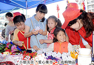 本次活動(dòng)約有近2000名長(zhǎng)沙市民參加,奉獻(xiàn)自己的愛心。一元錢買個(gè)掏耳勺、200元拿走一盒咸鴨蛋……來自四面八方的孩子把自己帶來的手工制品、家鄉(xiāng)特產(chǎn)等擺放在展臺(tái)上,由參加活動(dòng)的愛心人士現(xiàn)場(chǎng)“購(gòu)買”。勞嘉副總裁也在活動(dòng)現(xiàn)場(chǎng)為綠之韻正在籌辦舉行的“綠韻圓夢(mèng)?書香助學(xué)”愛心圖書捐贈(zèng)活動(dòng)挑選適合小朋友看的書籍。在家人的幫助下,一位坐著輪椅的老爺爺很高興地來“趕集”。當(dāng)看到瀏陽(yáng)市丁家小學(xué)的孩子們親手制作的石蘭花盆景后,他第一個(gè)買走了一盆花。當(dāng)孩子們希望他留下名字時(shí),老先生揮一揮手笑著拒絕了,只寫了“愛心人士”幾個(gè)字。