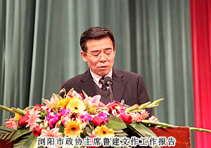 2011年12月25日,政協(xié)瀏陽市第八屆委員會第六次會議在瀏陽歐陽予倩大劇院隆重開幕。長沙市政協(xié)副主席、工商聯(lián)主席彭繼球,長沙市委統(tǒng)戰(zhàn)部副部長李偉,中共瀏陽市委副書記、代市長曹立軍,中共瀏陽市委副書記吳震,中共瀏陽市委副書記、政法委書記付旭明,瀏陽市政協(xié)主席魯建文,中共瀏陽市委常委、組織部部長、統(tǒng)戰(zhàn)部部長、市政協(xié)黨組副書記周春暉等各級領(lǐng)導(dǎo)出席會議。