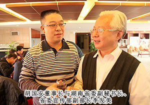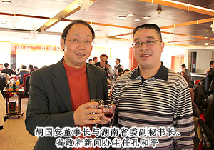 2011年12月16日上午,“央媒?湘企”深化“走轉(zhuǎn)改”座談會(huì)暨“御品德山懷”央媒好新聞?lì)C獎(jiǎng)儀式在長(zhǎng)沙普瑞溫泉大酒店舉行,來(lái)自中央70多家新聞單位駐湘記者站的100余名媒體負(fù)責(zé)人、記者、近20名湘企代表匯聚一堂,共同為深化新聞單位“走基層、轉(zhuǎn)作風(fēng)、改文風(fēng)”活動(dòng)進(jìn)行探討。原湖南省政協(xié)主席、中央新聞單位駐湘記者分會(huì)榮譽(yù)會(huì)長(zhǎng)王克英,湖南省委副秘書(shū)長(zhǎng)、省委宣傳部副部長(zhǎng)李發(fā)美,省委副秘書(shū)長(zhǎng)、省政府新聞辦主任孔和平等領(lǐng)導(dǎo)出席儀式并為獲獎(jiǎng)?wù)哳C獎(jiǎng)。綠之韻集團(tuán)胡國(guó)安董事長(zhǎng)應(yīng)邀出席會(huì)議并與在座媒體代表及各企業(yè)家展開(kāi)座談?dòng)懻摗?/span>