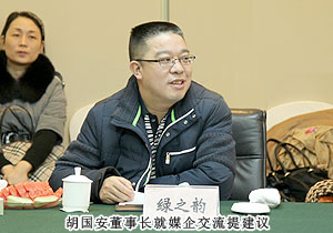 為積極響應(yīng)由中宣部、中央外宣辦、國(guó)家廣電總局、新聞出版總署、中國(guó)記協(xié)五部門(mén)對(duì)新聞戰(zhàn)線開(kāi)展的“走基層、轉(zhuǎn)作風(fēng)、改文風(fēng)”活動(dòng)部署,綠之韻集團(tuán)與三一、中聯(lián)、德山酒業(yè)等企業(yè)代表對(duì)央媒走基層提出了許多建設(shè)性意見(jiàn),熱切期盼央媒把深化“走轉(zhuǎn)改”活動(dòng)與主題宣傳、熱點(diǎn)引導(dǎo)和輿論監(jiān)督結(jié)合起來(lái)。與會(huì)央媒代表也紛紛表示,在今后的“走轉(zhuǎn)改”活動(dòng)中,將在“深、廣、實(shí)”上下功夫,“深”入企業(yè)研究問(wèn)題,用“走轉(zhuǎn)改”方式增強(qiáng)企業(yè)新聞吸引力,“廣”就是接觸企業(yè)的方方面面,采訪企業(yè)的一線工人,多聽(tīng)取一線工人的呼聲,“實(shí)”就是要重建設(shè)性報(bào)道,幫助企業(yè)解決實(shí)際問(wèn)題。胡國(guó)安董事長(zhǎng)在座談會(huì)上對(duì)多年來(lái)各媒體單位對(duì)企業(yè)的支持表示衷心感謝,并就企業(yè)與媒體關(guān)系的建立及交流提了許多建議,希望媒企合作更加緊密,媒體單位深入開(kāi)展“走轉(zhuǎn)改”,多為湖南實(shí)現(xiàn)“兩個(gè)加快”鼓與呼。