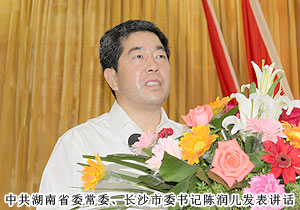 中共湖南省委常委、長(zhǎng)沙市委書記陳潤(rùn)兒發(fā)表講話,對(duì)大會(huì)的順利召開表示熱烈的祝賀。他表示:近年來(lái),全市各級(jí)共青團(tuán)組織和各界青年在市委、市政府的正確領(lǐng)導(dǎo)和高度關(guān)懷下,涌現(xiàn)了一批忠誠(chéng)黨的事業(yè)、熱愛團(tuán)的工作、勇挑社會(huì)責(zé)任的優(yōu)秀青年。廣大青年企業(yè)家要珍惜榮譽(yù),順應(yīng)發(fā)展潮流,艱苦創(chuàng)業(yè),銳意進(jìn)取,在發(fā)展壯大企業(yè)的同時(shí),敢于擔(dān)當(dāng)、服務(wù)社會(huì),成為推動(dòng)長(zhǎng)沙經(jīng)濟(jì)社會(huì)發(fā)展的一支生機(jī)勃勃的力量。共青團(tuán)湖南省委書記張值恒號(hào)召各級(jí)團(tuán)組織和廣大團(tuán)員青年要堅(jiān)定理想信念,加強(qiáng)作風(fēng)建設(shè);堅(jiān)持與時(shí)俱進(jìn),增強(qiáng)創(chuàng)新意識(shí);發(fā)奮學(xué)習(xí)求知,服務(wù)社會(huì)發(fā)展,為加強(qiáng)共青團(tuán)建設(shè),推進(jìn)長(zhǎng)沙經(jīng)濟(jì)社會(huì)新跨越做出積極貢獻(xiàn),并希望廣大青年勇立時(shí)代潮頭、盡展青春風(fēng)采,在長(zhǎng)沙的建設(shè)發(fā)展中展現(xiàn)人生價(jià)值,譜寫更加壯麗的青春樂(lè)章。