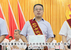 會(huì)上,為表彰先進(jìn),倡樹典型,長(zhǎng)沙市人民政府隆重表彰了“長(zhǎng)沙市優(yōu)秀青年企業(yè)家”、“長(zhǎng)沙市青年工作先進(jìn)個(gè)人”共20人。胡國(guó)安董事長(zhǎng)自2010年11月被評(píng)為“湖南省優(yōu)秀青年企業(yè)家”并記一等功以來(lái),緊緊圍繞全省黨政工作大局,深入貫徹落實(shí)科學(xué)發(fā)展觀,扎實(shí)開展創(chuàng)先爭(zhēng)優(yōu)活動(dòng),主動(dòng)貼近,主動(dòng)融入,主動(dòng)作為,積極為湖南省經(jīng)濟(jì)的發(fā)展貢獻(xiàn)力量。此次表彰中,胡國(guó)安董事長(zhǎng)榮獲“長(zhǎng)沙市優(yōu)秀青年企業(yè)家”稱號(hào),并記二等功。