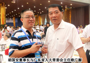2011年6月27-28日,廣州白云國際會議中心商賈云集、盛況空前,由廣東省人民政府與中華全國工商業(yè)聯(lián)合會共同舉辦的廣東與全國知名民營企業(yè)合作發(fā)展共促轉(zhuǎn)型升級大會暨合作項目簽約儀式在廣州白云國際會議中心隆重舉行。中共中央政治局委員、廣東省委書記汪洋、全國政協(xié)副主席、全國工商聯(lián)主席黃孟復(fù),中共中央統(tǒng)戰(zhàn)部副部長,全國工商聯(lián)黨組書記、第一副主席全哲洙,廣東省委副書記、省長黃華華,廣東省人大常委會主任歐廣源,廣東省政協(xié)主席黃龍云等出席會議以及歡迎晚宴。綠之韻集團(tuán)董事長胡國安作為中國優(yōu)秀民營企業(yè)家以及湖南省轉(zhuǎn)型升級突出企業(yè)代表應(yīng)邀出席此次會議。