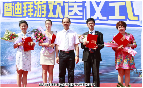 歡送大會隨著全體參與旅游的伙伴共同揭幕帆船模型引爆全場,在這激動人心的時刻,綠之韻集團董事長胡國安為榮獲豪華奔馳大獎暨參與迪拜旅游的伙伴們送上誠摯的祝福,祝愿他們在事業(yè)中能再創(chuàng)新高,在接下來的旅程中能夠玩的開心,并希望在來年能夠見到更多的伙伴參與到旅游研討會中來。胡國安董事長在致辭中動情的說:綠之韻的五月,一切都洋溢著激情與夢想,愿每一位綠之韻伙伴能從前行的成功者身上尋找到積極、正面的成功理念和行之有效的方法,愿每一位綠之韻精英不但能自己邁向成功之路更能將在綠之韻事業(yè)中尋找到的正確方法傳遞給每一位夢想成功、立志成功、以及正在成功路上苦苦探索的更多綠之韻精英們,綠之韻集團將幫助更多的人實現(xiàn)夢想。