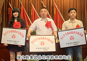 近年來,長沙市各級組織和單位緊緊圍繞市委、市政府打造“創(chuàng)業(yè)之都”和創(chuàng)建全國創(chuàng)業(yè)型城市的總體目標(biāo),以“創(chuàng)業(yè)富民、巾幗示范在行動”為載體,積極實施創(chuàng)業(yè)就業(yè)促進行動,在全市組織開展了“巾幗創(chuàng)業(yè)示范基地”、“女大學(xué)生創(chuàng)業(yè)就業(yè)實踐基地”的評選活動。2011年4月28日,綠之韻集團被長沙市婦女聯(lián)合會評選為長沙市“女大學(xué)生創(chuàng)業(yè)就業(yè)實踐基地”。中共長沙市委常委、統(tǒng)戰(zhàn)部長虢正貴、副市長何寄華等市級領(lǐng)導(dǎo)出席本次會議并頒發(fā)榮譽牌匾,長沙市婦聯(lián)黨組書記、主席譚慧慧作工作報告。