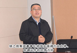 綠之韻集團董事長胡國安在會上發(fā)表講話,向各位領(lǐng)導的蒞臨和指導表示熱烈的歡迎和誠摯的感謝,同時表明綠之韻集團將繼續(xù)貫徹落實相關(guān)法律法規(guī),秉承“行業(yè)自律,低調(diào)運作”的經(jīng)營方針,積極配合各級部門的打傳工作,為維護社會穩(wěn)定不斷努力。