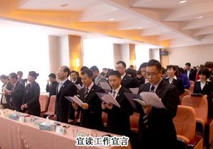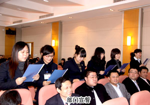 會(huì)議首先由綠之韻集團(tuán)董事常務(wù)副總裁勞嘉作2011年內(nèi)務(wù)管理工作計(jì)劃安排及工作動(dòng)員;緊接著,執(zhí)行總經(jīng)理龔振就2011年市場(chǎng)工作進(jìn)行統(tǒng)一部署;同時(shí),市場(chǎng)營銷中心總經(jīng)理劉彥明及企劃教育總監(jiān)何健分別就各自所管轄的部門作2011年的工作重點(diǎn)及詳細(xì)計(jì)劃講解,四位領(lǐng)導(dǎo)均表示,一定會(huì)帶領(lǐng)所轄部門,為完成公司2011年年度目標(biāo)而全力以赴!此外,三位員工代表也紛紛上臺(tái)發(fā)言,表決心,表信心!