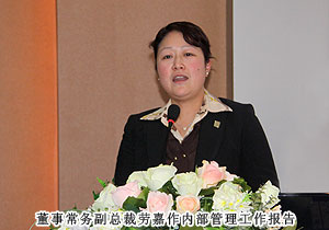 在全體綠之韻人鏗鏘有力的工作宣言中,新的希望化成新的動(dòng)力,為每一位綠之韻人注入力量。市場(chǎng)總監(jiān)諶獻(xiàn)軍作市場(chǎng)工作報(bào)告,新牌照的獲得、新規(guī)劃的推出、新產(chǎn)品的上市等都成為推動(dòng)市場(chǎng)發(fā)展最有力的臂膀。執(zhí)行總經(jīng)理龔振針對(duì)2011年市場(chǎng)營(yíng)運(yùn)發(fā)表講話,以強(qiáng)有力的扶持措施和各項(xiàng)企劃活動(dòng)為依托,以必勝的信念引導(dǎo)市場(chǎng)發(fā)展。董事常務(wù)副總裁勞嘉作內(nèi)部管理工作報(bào)告,總結(jié)2010年企業(yè)在強(qiáng)化服務(wù)、資源整合、產(chǎn)品多元等方面取得的成績(jī),同時(shí)提出來(lái)年具體的工作要求。