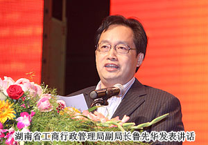 上午九點半,大會正式開始。湖南省工商行政管理局常務(wù)副局長寇勇發(fā)表講話,他表示,兩個條例頒布實施五周年以來,各相關(guān)職能部門積極履責,管理成效顯著,直銷市場秩序日趨規(guī)范,傳銷違法活動得到有效遏制。并希望各直銷企業(yè)嚴格遵守兩個條例,維護良好的市場秩序及直銷環(huán)境,共同和諧發(fā)展。緊接著,省工商行政管理局副局長魯先華宣讀兩個條例解讀征文的優(yōu)秀獲獎?wù)呙麊?,并由湖南省人民政府副秘書長談敬純等領(lǐng)導為獲獎?wù)哳C獎。