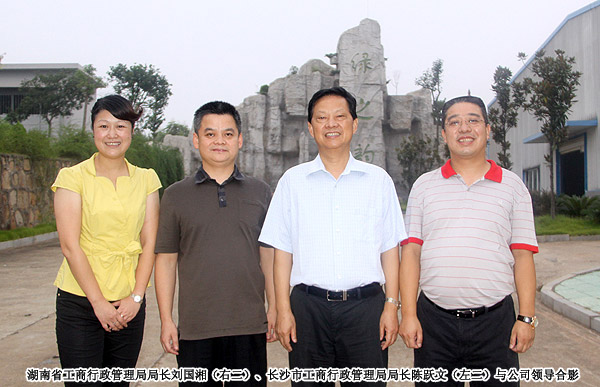 2010年9月2日,湖南省工商行政管理局局長劉國湘、湖南省工商行政管理局局長助理、長沙市工商行政管理局黨組書記、局長陳躍文一行再赴綠之韻集團(tuán)調(diào)研,對企業(yè)的品牌建設(shè)、產(chǎn)品質(zhì)量、市場規(guī)范管理等方面做了詳細(xì)的了解。