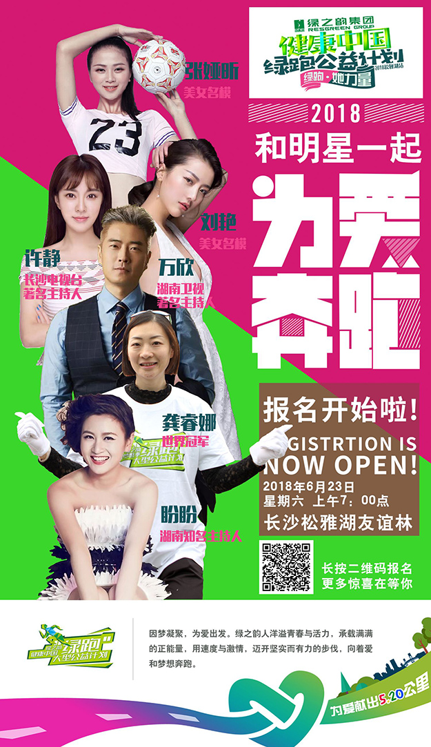 綠跑·她力量為貧困母親獻(xiàn)愛5.20公里2018年6月23日上午 長沙松雅湖畔健康中國綠之韻大型公益“綠跑”活動計劃即將火熱開啟美女名模 網(wǎng)紅大V這個夏天,你想遇見誰?