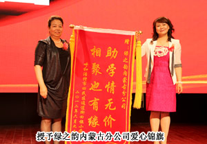一直以來,綠之韻內(nèi)蒙古的愛心經(jīng)銷商們總是活躍在各項(xiàng)公益慈善中,將回饋社會(huì)、撒播愛心作為永恒不變的主題。慶典現(xiàn)場(chǎng),王連坤、郝建兵、張聞?dòng)?、張聞華、張弘菲、劉美成、周淑梅、大高娃、閆素琴、喬桂英、丁文慧、秦慧、黃麗、楊玉蓮14名愛心經(jīng)銷商為呼和浩特市回民區(qū)通道街小學(xué)捐贈(zèng)善款兩萬元,為孩子們建立流動(dòng)圖書館,用愛托起孩子們茁壯成長(zhǎng)的藍(lán)天。副總經(jīng)理何健為這14名愛心代表頒發(fā)了“2012年度綠之韻愛心慈善大使捐款榮譽(yù)證書”,可愛的孩子們也送上了精心準(zhǔn)備的詩(shī)歌朗誦和舞蹈表演。愛心代表王連坤表示:很高興能為這次助學(xué)活動(dòng)盡一份力,同時(shí)也希望更多的人加入到慈善事業(yè)中,將承載著愛心的“接力棒”永遠(yuǎn)傳遞下去。
