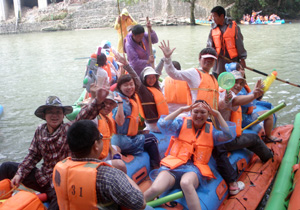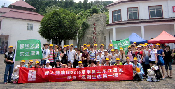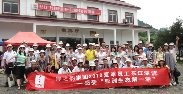 旅游途中,不僅參觀了霧漫小東江、猴古山瀑布、東江大壩等景點(diǎn),大伙也嘗到了東江湖特產(chǎn)的各色美味,在美麗的景色前爭(zhēng)相合影,把綠之韻人的快樂(lè)和輕松留在了他鄉(xiāng)。此次旅游的目的地東江漂流是最刺激的項(xiàng)目(全長(zhǎng)28公里,落差75米,途經(jīng)108個(gè)急險(xiǎn)灘),同事們積極購(gòu)置了水槍、水瓢、水盆、雨衣等備戰(zhàn)工具,當(dāng)大家到達(dá)起漂點(diǎn),邊穿救生衣邊潑水,一場(chǎng)激烈的水戰(zhàn)在此起彼伏的尖叫和歡笑聲中拉開(kāi)序幕。順流而下,河段兩岸青山疊翠,珍稀花草爭(zhēng)妍斗艷,原始森林相擁對(duì)峙,怪石林立,水質(zhì)清澈,給人以探幽、獵奇、拾趣之樂(lè),同事們盡情地領(lǐng)略著博浪飛舟的激越、高歌揮槳的豪放。