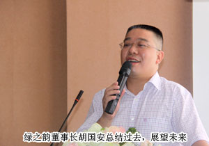 最后,胡國安董事長作總結發(fā)言,首先向所有獲獎的員工表示祝賀和肯定,同時胡總表示:2010年已過去一半,面對日趨激烈的市場競爭和復雜多變的經營形式,每一位綠之韻人都應該思考如何突破發(fā)展,如何服務市場,如何發(fā)揮才干,與市場分銷伙伴攜手與共,創(chuàng)造綠之韻持續(xù)共贏的輝煌!