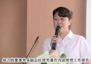 本次員工大會分為四大篇章:總結奮進、鼓勵嘉獎、成長分享、領導寄語,全面回顧了綠之韻在第二季度發(fā)展的點滴歷程。會上,市場工作報告,從業(yè)績指標、分公司建設等方面讓全體員工清晰了目前市場現狀及下一步工作目標和思路;綠之韻國際市場運營副總裁李繼前介紹了國際市場建設的相關情況;董事常務副總經理勞嘉就內部管理作工作報告,詳述了綠之韻第二季度在文化升華、提升服務、優(yōu)化產品等方面做出的努力及取得的成就,同時向全體員工提出要求:主動思考、勇于承擔、團隊協(xié)作、堅定信念,以全新的姿態(tài)迎接新一輪的挑戰(zhàn)!