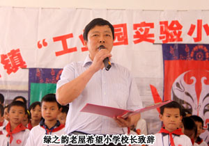 2010年5月31日,“綠之韻樹人行動(dòng)”走進(jìn)集團(tuán)捐贈(zèng)的第一所希望學(xué)校——老屋希望小學(xué)看望慰問(wèn)留守兒童。綠之韻集團(tuán)董事常務(wù)副總經(jīng)理勞嘉、總經(jīng)理助理戴曉彥及總部工作人員一行與湖南地區(qū)的愛(ài)心分銷商代表張建軍、黃翔、李正元、周書明、沈慧芳等精心準(zhǔn)備了書包、作業(yè)本、文具盒、羽毛球拍等愛(ài)心物資,為留守兒童送去了“六?一”兒童節(jié)的祝福。同時(shí),總部工作人員走進(jìn)教室,與小朋友們一起唱歌、玩游戲,快樂(lè)溫馨的場(chǎng)面,讓“綠之韻樹人行動(dòng)”的愛(ài)心理念再次升華。