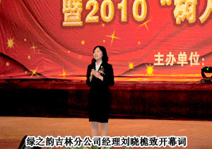 劉曉桅經(jīng)理致開(kāi)幕詞,深情地回顧了綠之韻與伙伴們一年時(shí)間里攜手走過(guò)的喜悅與激情,并真誠(chéng)地感謝所有與吉林分公司風(fēng)雨同舟,相攜并進(jìn)的事業(yè)伙伴,讓在場(chǎng)的每一位深受感動(dòng)。