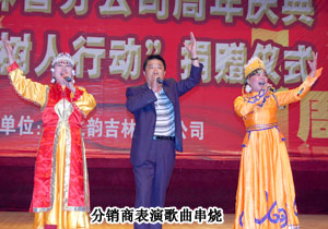 慶典在歡樂(lè)與溫馨的氛圍中進(jìn)行,分銷精英自編自導(dǎo)了精彩的歌曲串燒、功夫扇、快板等特色節(jié)目,遍布全省的各加盟專賣店的店經(jīng)理也精心準(zhǔn)備了一段視頻,總結(jié)了吉林分公司為市場(chǎng)做出的貢獻(xiàn),并表示將永遠(yuǎn)陪伴它堅(jiān)定前行?,F(xiàn)場(chǎng),一群見(jiàn)證了吉林分公司誕生、成長(zhǎng)、騰飛的分銷伙伴也登臺(tái)分享了自己的成長(zhǎng)歷程,樸實(shí)的話語(yǔ)、感人的事跡、豐滿的經(jīng)歷,道出了他們對(duì)綠之韻事業(yè)的堅(jiān)守與執(zhí)著,在吉林分公司的成長(zhǎng)與收獲。