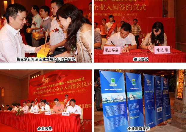 2009年9月27日,湖南環(huán)??萍紙@長沙國際企業(yè)中心企業(yè)簽約入園儀式在湖南長沙運(yùn)達(dá)•喜來登大酒店隆重舉行。入園簽約儀式得到了省市區(qū)領(lǐng)導(dǎo)和有關(guān)部門大力支持,各級領(lǐng)導(dǎo)、長沙銀行、市青年聯(lián)合會及意向企業(yè)代表匯聚一堂,共同見證這次具有重要里程碑意義的盛會。綠之韻集團(tuán)常務(wù)副總經(jīng)理勞嘉女士、湖南綠之韻保健日用品有限公司執(zhí)行總經(jīng)理孫立農(nóng)先生作為此次入園十八家企業(yè)代表出席本次大會,并簽訂入園協(xié)議。