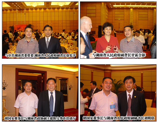 在隨后舉行的省情推介會暨重大合作項(xiàng)目簽約儀式上,胡國安董事長與中外嘉賓及客商一同觀賞了專題宣傳片《湖南,讓夢想更精彩》。大會由副省長甘霖主持,商務(wù)部外資司副司長黃愛菊在大會上致辭。上海市委副書記、上海人民政府市長韓正,原外經(jīng)貿(mào)部部長、中國外商投資企業(yè)協(xié)會會長石廣生,上海市委常委、副市長屠光紹出席推介會。湖南省省長周強(qiáng)向2000多位境內(nèi)外客商熱情洋溢地推介湖南,希望加強(qiáng)與長三角經(jīng)濟(jì)圈經(jīng)貿(mào)合作,并熱情邀請境內(nèi)外客商投資湖南。