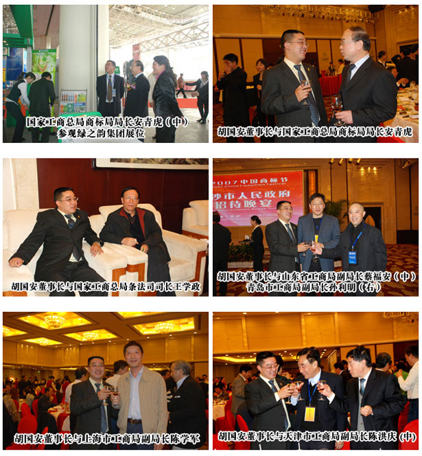 2007年11月3-6日,2007中國(guó)商標(biāo)年會(huì)在長(zhǎng)沙召開(kāi)。此次商標(biāo)節(jié)由中國(guó)工商總局批準(zhǔn),中華商標(biāo)協(xié)會(huì)和長(zhǎng)沙市人民政府共同主辦,圍繞商標(biāo)保護(hù)權(quán)益、促進(jìn)和諧發(fā)展的時(shí)代主題,通過(guò)相關(guān)論壇及廣泛的國(guó)內(nèi)外交流活動(dòng),營(yíng)造有利于保護(hù)自主品牌,促進(jìn)科學(xué)發(fā)展、共同發(fā)展、和諧發(fā)展,謀求和諧共贏的國(guó)際環(huán)境,促進(jìn)我國(guó)商標(biāo)事業(yè)的發(fā)展。本次商標(biāo)年會(huì)吸引了世界知識(shí)產(chǎn)權(quán)組織、美國(guó)專利商標(biāo)局官員,中外知名企業(yè)代表以及中國(guó)工商、海關(guān)、公安等相關(guān)領(lǐng)域卓越成就的專家、學(xué)者紛紛參加,并帶來(lái)了各自獨(dú)到見(jiàn)解。全國(guó)人大常委會(huì)副委員長(zhǎng)蔣正華、國(guó)家工商總局副局長(zhǎng)李東生、世界知識(shí)產(chǎn)權(quán)組織助理總干事王彬穎、中華商標(biāo)協(xié)會(huì)會(huì)長(zhǎng)李建中、長(zhǎng)沙市人民政府市長(zhǎng)譚仲池、湖南省工商局局長(zhǎng)張漢良、國(guó)際商標(biāo)協(xié)會(huì)前主席Anne.Chasser、歐洲內(nèi)部市場(chǎng)協(xié)調(diào)局司長(zhǎng)Beate. Schmidt以及全國(guó)各省市工商行政管理局領(lǐng)導(dǎo)以及一大批商標(biāo)專家、優(yōu)秀企業(yè)家出席了本次年會(huì),綠之韻集團(tuán)作為湖南省的重點(diǎn)品牌推薦企業(yè)也應(yīng)邀請(qǐng)參展,綠之韻集團(tuán)董事長(zhǎng)兼總裁胡國(guó)安先生和綠之韻集團(tuán)常務(wù)副總經(jīng)理勞嘉女士出席了本次商標(biāo)節(jié)年會(huì)的各項(xiàng)專題研討會(huì)和交流。