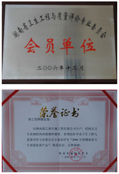 好消息:綠之韻螺旋藻憑借質高品優(yōu)的優(yōu)特性經(jīng)過相關衛(wèi)生監(jiān)測機構的檢測和推薦,被湖南省預防醫(yī)學會衛(wèi)生工程與質量評價專業(yè)委員會專家綜評為“2006年度湖南省衛(wèi)生質量優(yōu)質新產品”。 并且,綠之韻公司被聘為湖南省預防醫(yī)學會衛(wèi)生工程與質量評價專業(yè)委員會“會員單位”