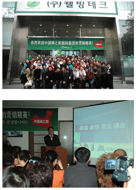 韓國“Wellbeingtech”公司從事直銷業(yè)已有三年時間,目前擁有四百多個產(chǎn)品,覆蓋了生活日用的各個方面,深受韓國人的喜愛。在這里,我們不僅感受到韓國同行業(yè)者對綠之韻的熱烈歡迎,而且,也看到韓國直銷行業(yè)一派和諧而充滿朝氣的忙碌景象。年輕化的銷售人員或是圍桌而坐認(rèn)真的溝通交流,或是齊聚一起坐在小會議室里聚精會神地聽著講師授課。一張張年輕的面容流露出求知若渴的神情,讓我們以為走進(jìn)了某所大學(xué)的教室。韓國人民對直銷事業(yè)的熱愛和認(rèn)可度可見一斑。