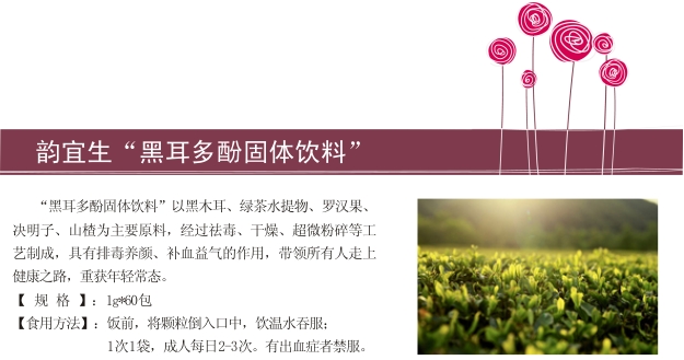 “黑耳多酚固體飲料”中的黑木耳能降低血黏度,清除體內(nèi)多余脂肪,降低膽固醇,減少血栓出現(xiàn)的可能,調(diào)整體內(nèi)微循環(huán),凈化血液,疏通血管從而預(yù)防心腦血管疾病的發(fā)生。山楂能顯著降低血清膽固醇及甘油三酯,有效防治動脈粥樣硬化;山楂還有擴(kuò)張血管和持久降壓的作用。