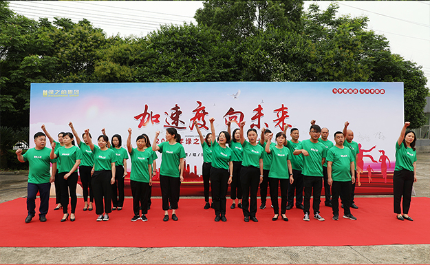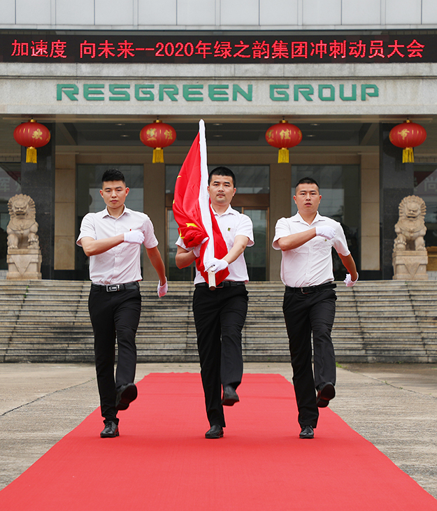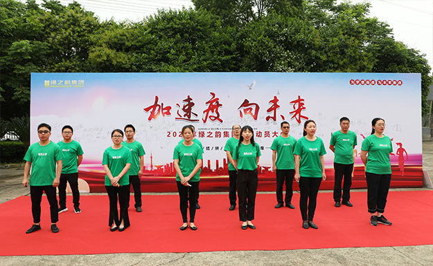 加速度,向未來!5月8日上午,2020年綠之韻集團沖刺動員大會舉行。綠之韻集團董事長胡國安、董事總裁勞嘉攜公司高管及全體員工參加活動。