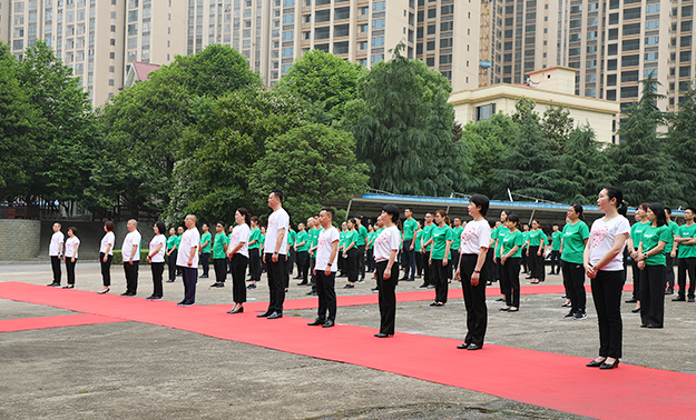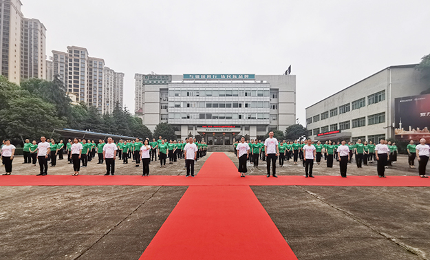 一曲激昂澎湃的《綠韻飛揚》拉開了動員大會序幕。在集團公司前坪,全體綠之韻人統(tǒng)一著裝、整齊列隊迎接升旗儀式暨動員大會。伴隨著莊嚴(yán)雄壯的國歌聲,鮮艷的五星紅旗冉冉升起,綠之韻家人向國旗行注目禮,內(nèi)心激蕩著對偉大祖國的熱愛和崇敬。