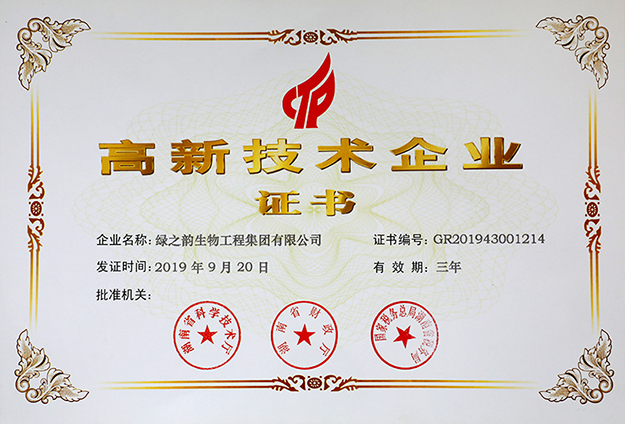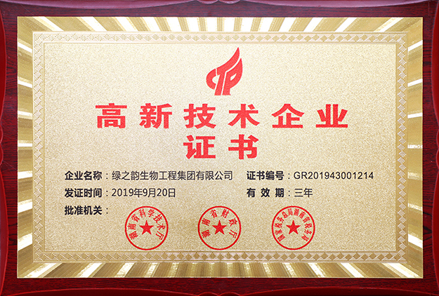 近日,根據(jù)全國(guó)高新技術(shù)企業(yè)認(rèn)定管理工作領(lǐng)導(dǎo)小組辦公室公示的《關(guān)于湖南省 2019年第二批高新技術(shù)企業(yè)備案的復(fù)函》(國(guó)科火字{2019}218號(hào))文件。綠之韻集團(tuán)再度榮獲“高新技術(shù)企業(yè)”稱號(hào),證書編號(hào):GR201943001214。該資證由湖南省科學(xué)技術(shù)廳、湖南省財(cái)政廳、國(guó)家稅務(wù)總局湖南省稅務(wù)局聯(lián)合批準(zhǔn)頒發(fā),有效期為三年。