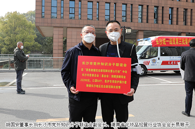 疫情無情人有情,眾志成城抗疫情。參加完捐贈(zèng)儀式,胡國(guó)安董事長(zhǎng)感觸頗深,他表示:長(zhǎng)沙統(tǒng)一戰(zhàn)線心手相連、守望相助,彰顯了統(tǒng)一戰(zhàn)線廣大成員的責(zé)任擔(dān)當(dāng)和愛國(guó)情懷。當(dāng)前,正值鞏固疫情防控的重要時(shí)刻,我代表長(zhǎng)沙市海外聯(lián)誼會(huì)廣大會(huì)員及會(huì)員企業(yè)鄭重承諾,我們將充分發(fā)揮界別資源優(yōu)勢(shì),有人出人、有力出力、有錢出錢,通過多種方式用實(shí)際行動(dòng)支持奮戰(zhàn)在一線的廣大醫(yī)護(hù)人員和基層工作者。圍繞疫情防控與恢復(fù)經(jīng)濟(jì)社會(huì)正常運(yùn)行的需求,我們將進(jìn)一步與社會(huì)各界人士和會(huì)員單位一起,結(jié)合自身優(yōu)勢(shì)和各行各業(yè)所長(zhǎng),為奪取疫情防控和經(jīng)濟(jì)社會(huì)發(fā)展雙勝利繼續(xù)貢獻(xiàn)智慧和力量。