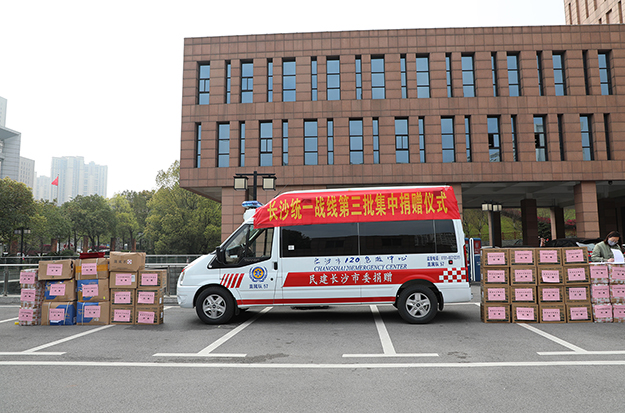 此次捐贈(zèng)儀式由中共長(zhǎng)沙市委統(tǒng)戰(zhàn)部常務(wù)副部長(zhǎng)劉映群主持。儀式上,長(zhǎng)沙市民政局黨組書記、局長(zhǎng)、市慈善總會(huì)副會(huì)長(zhǎng)陳昌佳代表長(zhǎng)沙慈善總會(huì)接受各界愛心捐贈(zèng)物資,中共長(zhǎng)沙市委常委、市委統(tǒng)戰(zhàn)部部長(zhǎng)譚小平向各界愛心代表頒發(fā)捐贈(zèng)證書。湖南省政協(xié)委員、長(zhǎng)沙市海外聯(lián)誼會(huì)副會(huì)長(zhǎng)、綠之韻集團(tuán)董事長(zhǎng)胡國(guó)安代表長(zhǎng)沙市海外聯(lián)誼會(huì)向長(zhǎng)沙市慈善總會(huì)捐贈(zèng)醫(yī)用口罩、護(hù)目鏡、消毒液等抗疫急需物資?,F(xiàn)場(chǎng)真情涌動(dòng),彰顯社會(huì)各界人士責(zé)任擔(dān)當(dāng)。