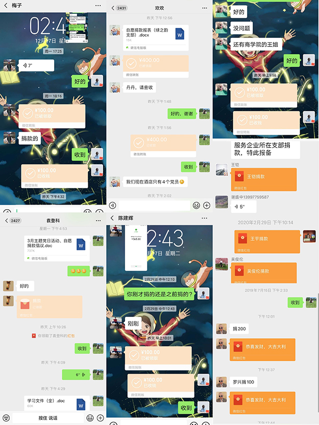 為打贏疫情防控阻擊戰(zhàn),積極響應(yīng)黨中央對廣大黨員的號召,3月4日,綠之韻集團(tuán)黨委組織廣大黨員同志,自愿捐款支持新冠肺炎疫情防控工作。此次捐款尊重黨員意愿,堅持自覺自愿、量力而行,不提硬性要求,不搞強迫命令,普通黨員捐款一般不超過100元,倡導(dǎo)黨員同志根據(jù)實際情況表達(dá)愛心。廣大黨員同志接到捐款倡議后,踴躍參與,在現(xiàn)場根據(jù)文明“一米線”原則進(jìn)行捐款,在家中值守和線上輪班的黨員通過微信轉(zhuǎn)賬的方式進(jìn)行捐款。