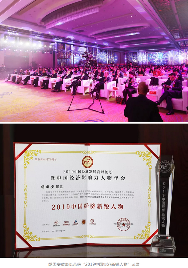 為弘揚新時代企業(yè)家精神,更好發(fā)揮企業(yè)家作用,挖掘一批具有持續(xù)創(chuàng)新能力、管理規(guī)范、信譽良好、社會責(zé)任感強的影響力人物和先進典型,進一步促進企業(yè)實現(xiàn)高質(zhì)量發(fā)展,營造企業(yè)健康發(fā)展環(huán)境,共同為實現(xiàn)我國經(jīng)濟高質(zhì)量發(fā)展做出更多的貢獻。大會期間,舉行了“2019中國經(jīng)濟影響力年度人物頒獎典禮”表彰活動,以“創(chuàng)新力、影響力、推動力、貢獻力、成長力”五大評選標(biāo)準(zhǔn),對中國經(jīng)濟發(fā)展做出突出貢獻的先進人物和先進單位進行了表彰。綠之韻集團董事長胡國安獲評“2019中國經(jīng)濟新銳人物”。